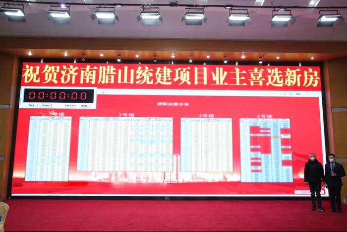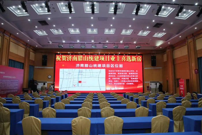 分房现场位于济南市鲁中酒店,布设签到区、候选区、选房区、手续办理区、茶歇区。结合现场巨幅项目概况展示牌、售房手册,住户可以清晰全面掌握房源信息、选房流程、配套服务全貌。