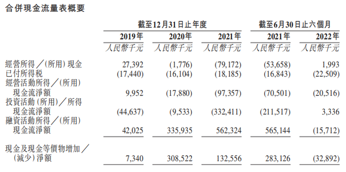 截至2019年、2020年及2021年12月31日止年度以及截至2022年6月30日止六个月,优蓝国际的经营活动所得(所用)现金流净额分别为995.2万元、-1788.0万元、-9735.7万元及-2051.6万元。