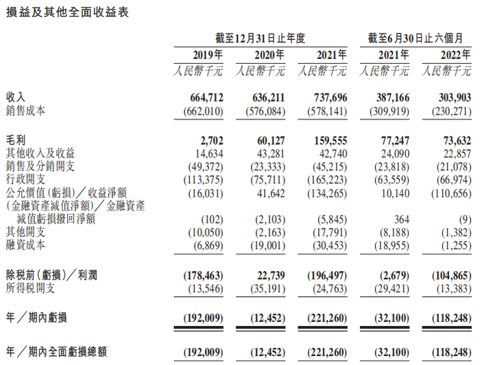 2019年至2021年及2022年1-6月,优蓝国际的收入分别约为6.65亿元、6.36亿元、7.38亿元和3.04亿元。