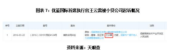 需注意的是,优蓝国际控股股东、董事会主席兼首席执行官王云雷还曾因借款合同纠纷被小额贷款公司追债起诉。