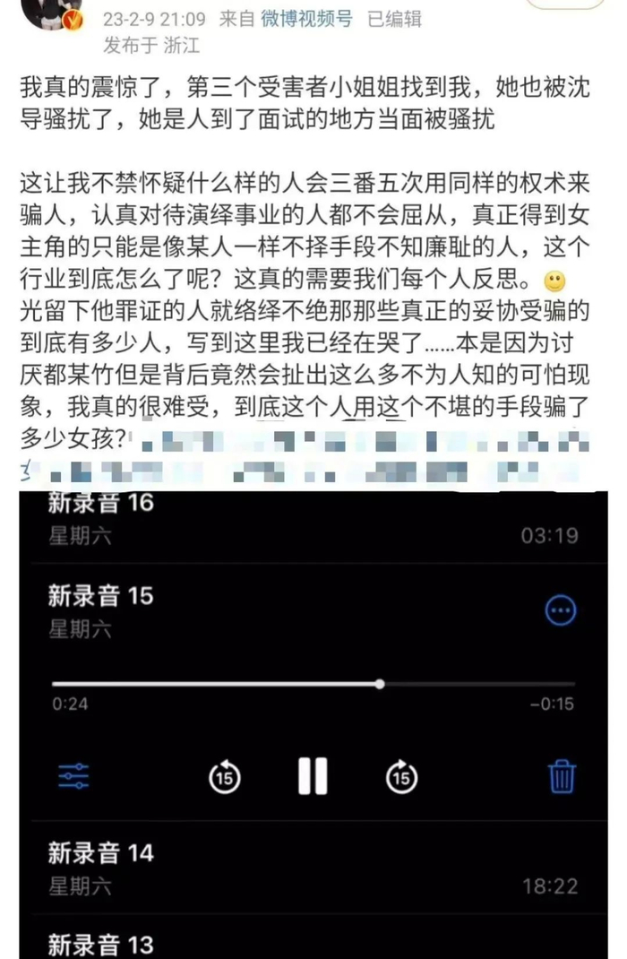 说了自己被导演骚扰的经过,还放出了录音证据。