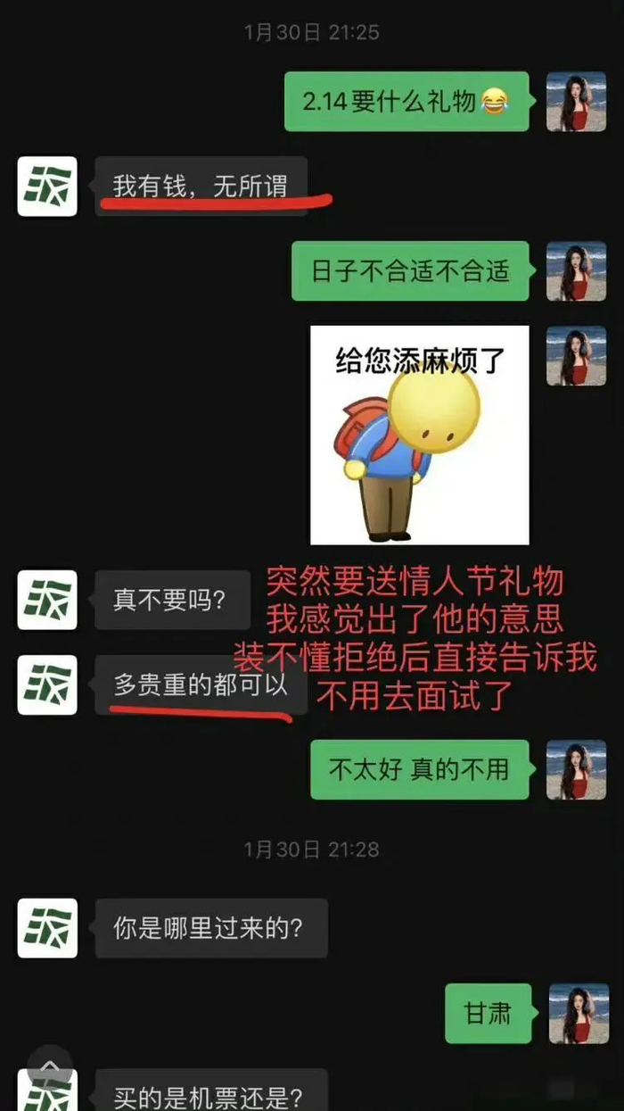 第一承诺让对方直接通过面试,第二采取金钱诱惑,第三用前途做威胁。