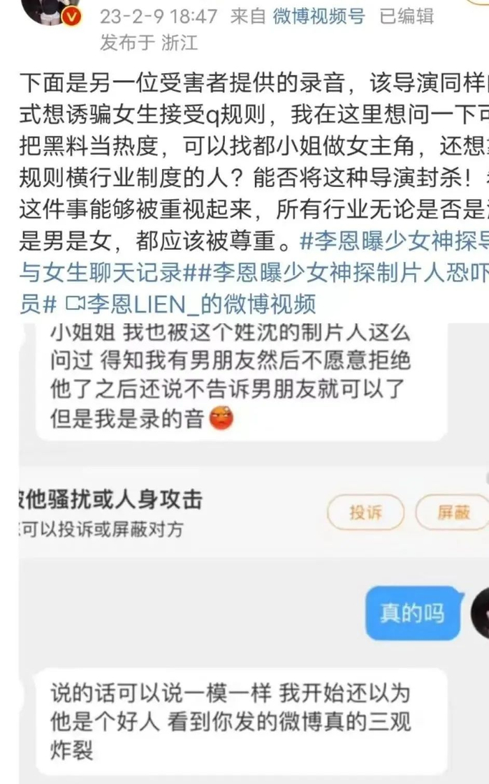 但是通过这些女生的爆料,该导演确实有“潜规则”的要求。