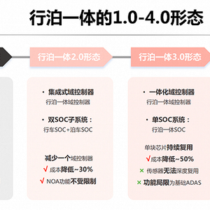 4.0形态则是真正做到单个域控制器,单个SoC,传感器与芯片深度复用,真正实现行泊一体化。