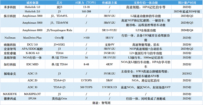 其中,禾多科技在2022年12月宣布基于地平线征程系列的“行泊一体”自动驾驶域控制器HoloArk。官方表示,已经在2022年获得奇瑞等多家中国头部自主品牌车企的定点,预计在2023年量产装车。