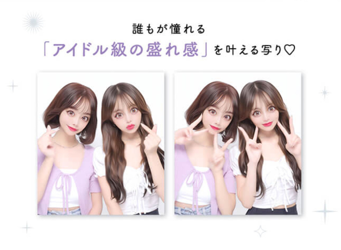 △ FuRyu 于 2023 年 1 月下旬投入使用的最新机型“IDOLY studio”拍摄效果图。这款大头贴机器以“女神级别的可爱”、“让你拥有 K-POP 爱豆的体验”为宣传语。捕捉到 K-POP 在日本年轻群体中的流行趋势之后,FuRyu 没有放弃美颜,而是推出了“K-POP 爱豆级”的美颜功能。图片来源 | FuRyu