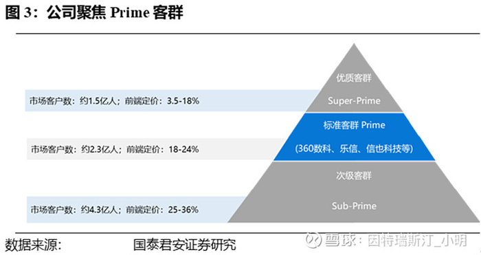 从信贷行业客群分级来看,奇富科技主要服务覆盖2.3亿人的标准客群,该部分群体信用评级低于传统金融机构服务的优质客群,是小微企业“融资难、融资贵”问题的堵塞区域,经过多年深耕,公司在覆盖标准客群的各类机构中规模排名第一。