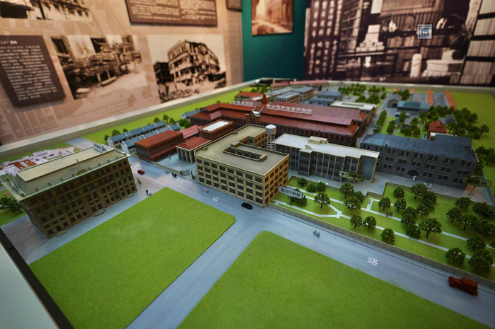 20世纪20年代上海宝山路商务总部建筑群模型位于陈列馆最显要位置,再现了商务印书馆当年的兴盛景象。
