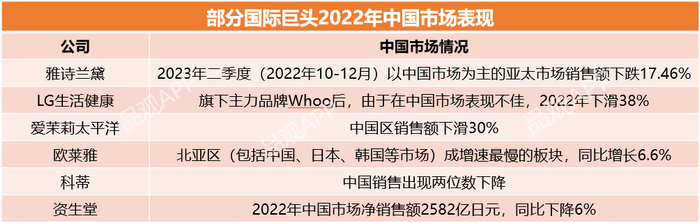 除了在中国市场首次亏损的资生堂,爱茉莉太平洋2022年净利润近乎腰斩,中国市场成为负累,营收下滑30%;即便是业绩高增的欧莱雅,其北亚区(包括中国、日本、韩国等市场)也成为增速最慢的区域。