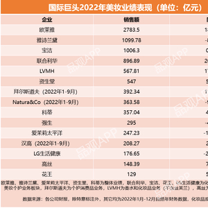 截至2月17日,欧莱雅、资生堂、雅诗兰黛等多家国际巨头已交出了2022年“成绩单”。化妆品观察梳理发现,2022年15家国际巨头美妆业务总销售额达到9200亿元,距离销售额破万亿仅一步之遥。