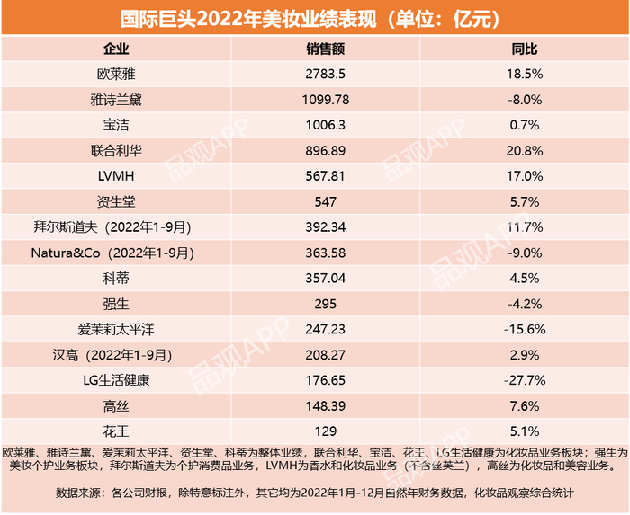国际巨头化妆品销售即将突破万亿规模。