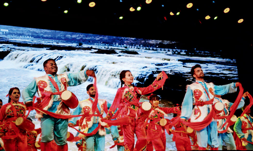 2018年12月,陕西省留学生新年晚会在西安交通大学宪梓堂举行,图为《欢庆腰鼓》表演