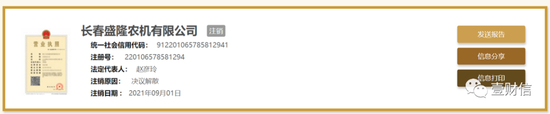 此外,沃得农机招股书还显示公司在2022年1-6月还对客户长春盛隆农机有限公司存在销售额,但企查查却显示该客户在2021年9月就已经注销。