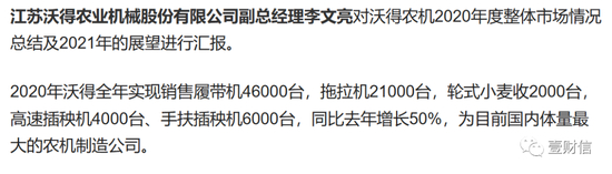 不过根据沃得农机公众号所发布的宣传报道,相关数据与招股书披露的存在一定差距。