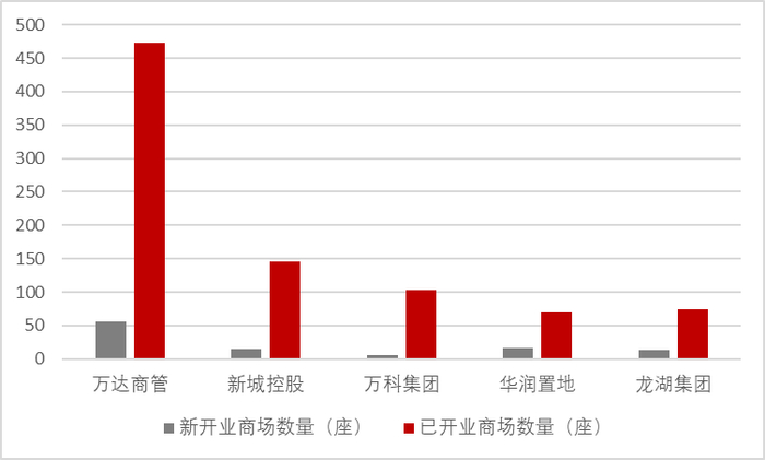我们选取了万达商管、万科集团、华润置地和龙湖集团四家涉足商业地产的企业与公司进行比较,发现公司商场开业数量处于行业领先地位。2022年新城控股以已开业商场数量145座位于行业第二,仅次于行业绝对龙头万达,扩张趋势明显。公司的新开业商场数量15座维持在行业中游水平,未来整体规模增长潜力较大。