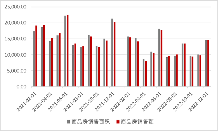 Figure22021年2月以来全国商品房销售面积(万平方米)&销售金额(亿元)