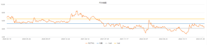 对比PE(TTM)估值标准偏差,2月13日公司PE(TTM)为4.48,PE近三年平均值为5.31,目前公司PE处于低位震荡运行。