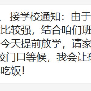 “由于病毒传播性比较强,结合咱们班实际情况,今天提前放学,请家长12:00在校门口等候。”2月20日早上,一张截图在金华市民朋友圈中传播。
