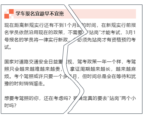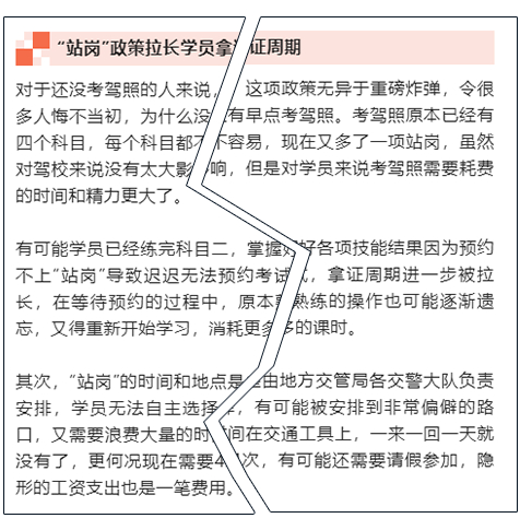 文中所述【“站岗”政策拉长学员拿证周期】,请准备报名驾考的小伙伴理性看待,以官方权威发布信息为准!