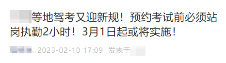 网上热传消息“预约驾考需站岗”