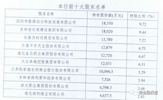 前十大股东分别为:深圳市银通动力科技发展有限公司、吉林省交通建设集团有限公司、长春及时雨商贸有限公司、长春中东天宝股份有限公司、通化金马药业集团股份有限公司、大众卓越控股、江苏张家港农商行、吉林省保利君和投资有限公司、浙文影业集团股份有限公司、通化保利煤业有限公司。