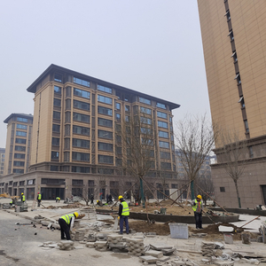 从华望城建设现场看,目前建筑主体和外立面已经大致完成,很多施工人员都在做道路铺设、小区绿化等工作。