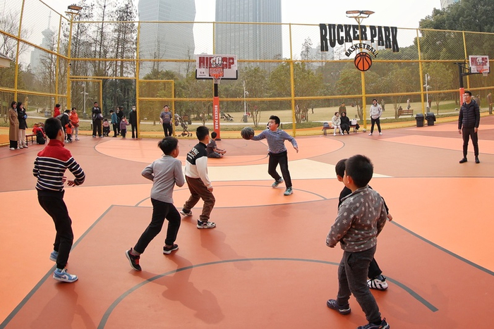 普陀中环篮球公园原是周边居民避之不及的垃圾清运车停放点,整个项目的推进过程形成跨部门合作机制。由普陀区体育局牵头组织,区建交委、区规划局、区绿化和市容管理局、区公安分局、长风管委会等多部门配合,多次召开协调会,将闲置空间资源的所有权、使用权、管理权等诸多问题一一解决。最终由洛合体育统一规划、精心设计,使中环立交桥下方空间得到充分利用,成为城市复合用地改造,破解老百姓“健身去哪儿”难题的经典案例。