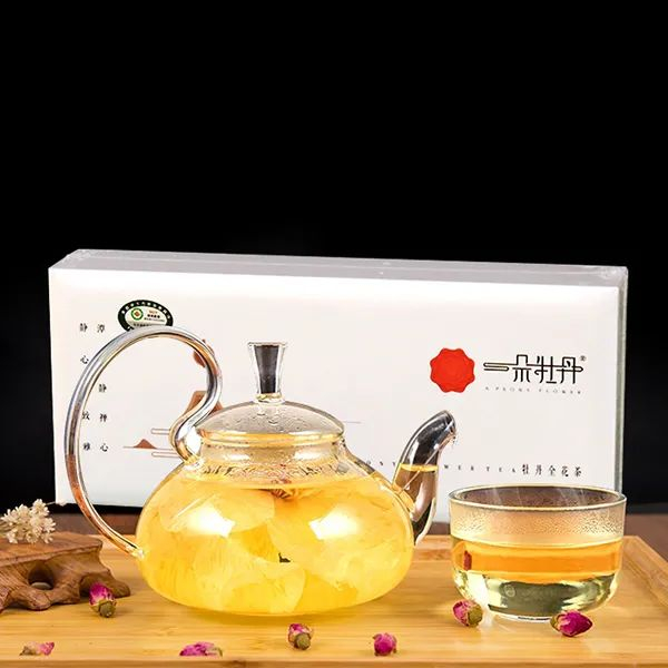 一朵牡丹全花茶选自洛阳的高山凤丹牡丹。