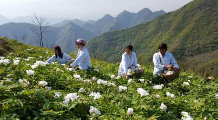 于“洛阳后花园”杨山种植区域内,培育种植约3000亩的高山白凤牡丹基地。