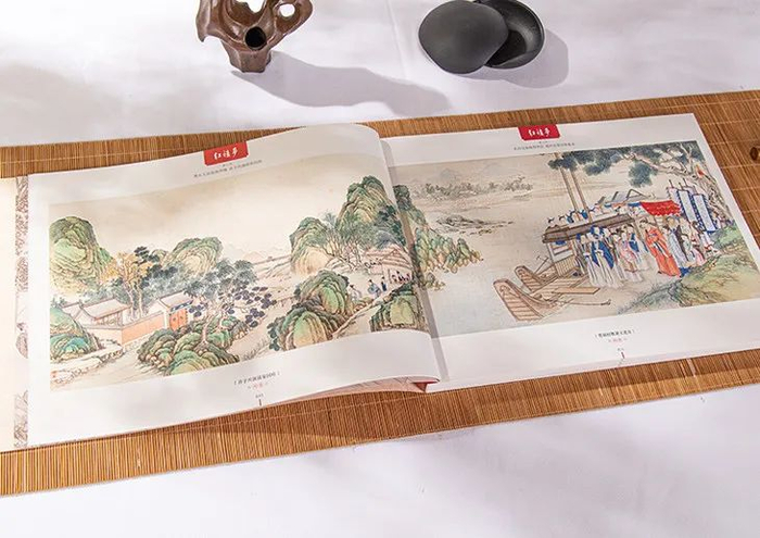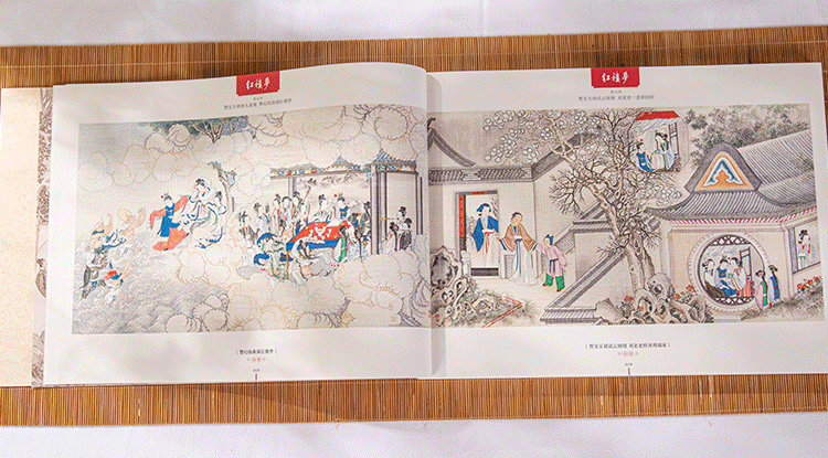 如宝黛初见、刘姥姥进大观园、黛玉葬花、宝钗扑蝶、晴雯撕扇、湘云醉卧芍药茵……红楼经典场面,一一大开卷呈现,如临其境!