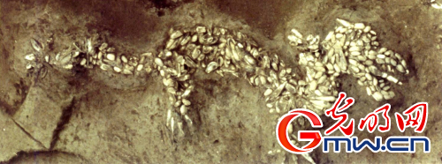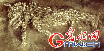 龙虎相配,在中国文化审美观念中是阳刚之气和威严权势的象征,但其意义远不止于此。作为陪葬品,蚌塑龙虎无疑显示了墓主人非同寻常的身份和地位,而当学者进行深入研究时,其天文学价值随之显现。中国是世界上较早进入农业文明的国家之一。为了确定农时服务于农业生产,人们不间断地观测日月五星的行度,苍龙、白虎、朱雀、玄武即是其中代表。在这组蚌图中,龙虎的摆放位置恰是“东宫苍龙”“西宫白虎”的方位,结合墓主人脚下的勺形图案,恰是组成一幅星象图——“北斗栓二象”。这一研究成果,为今人解读古人宇宙观提供了线索。