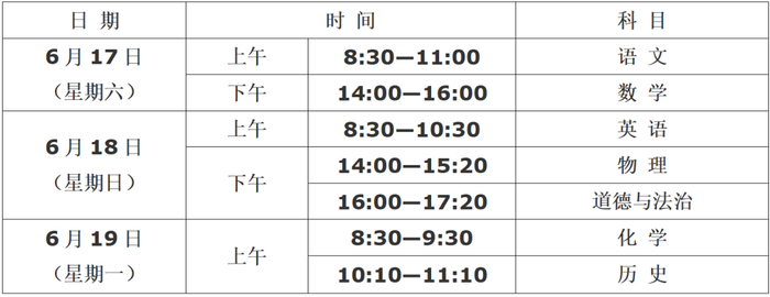 1. 笔试科目:语文、数学、英语、物理、道德与法治、化学、历史,共7科7卷。其中,道德与法治实行开卷笔试,其他科目均为闭卷笔试。笔试科目的语文科目为一卷制,其他科目为两卷制。各科目试卷满分值及考试时长分别为:
