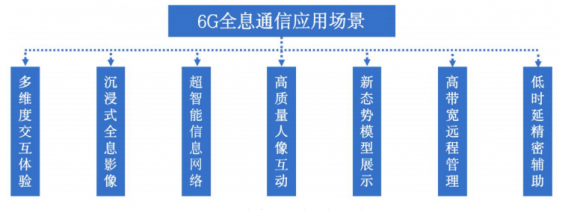 根据依赖技术及给予用全息AR、户体验的不同,未来 6G 时代,全息通信的应用场景将有七大类,分别是:带宽远程管理,低时延精密辅助,超智能信息网络,多维度交互体验,高质量人像互动,临场态全息展示和沉浸式全息影像。从业人士认为,全息通信在6G网络下正从科幻走向现实,AR、全息通信等应用有望在toB和toC领域实现爆发。