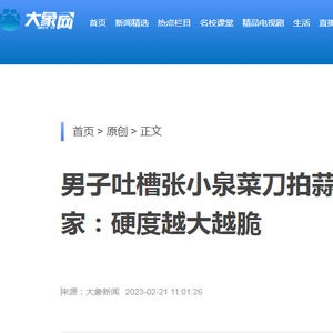 据大象新闻2023年2月21日报道,2月20日,江苏徐州一消费者吐槽称,用张小泉(SZ301055,股价15.79元,市值24.63亿元)菜刀拍蒜后,刀断成两截。
