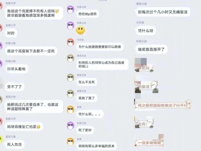 满是匿名账号的群,像潘多拉魔盒,所有人在源源不断吐出黑色的恶意: