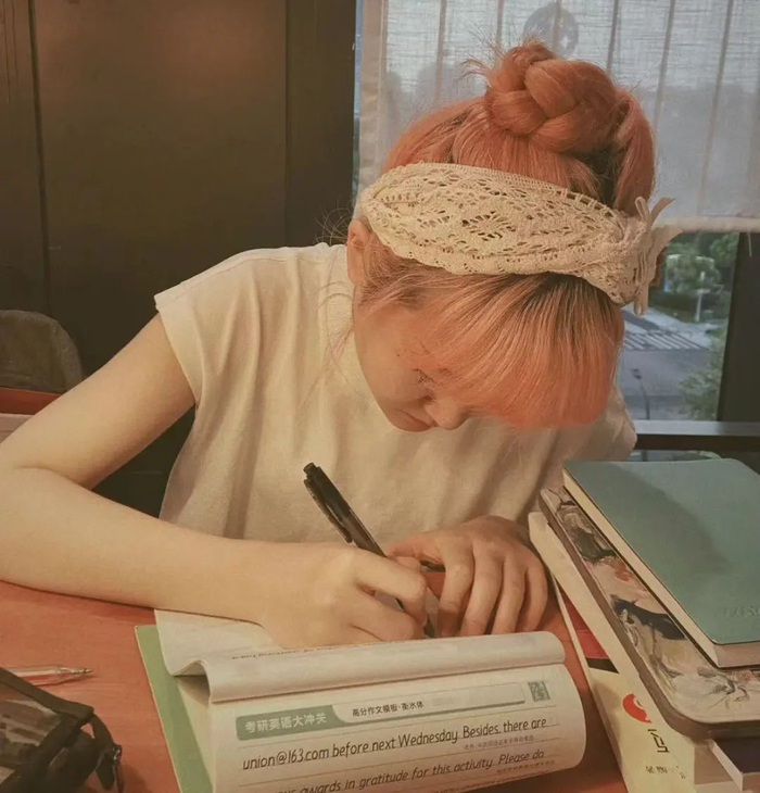 在粉发照片走红之前,她最火的一条笔记,名叫“保研逆袭之路”。