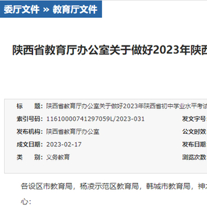 省教育厅明确2023年陕西省初中学业水平考试命题工作以《教育部关于加强初中学业水平考试命题工作的意见》为指导,落实立德树人根本任务,发挥考试评价对中小学规范办学、促进学生全面发展和健康成长等教育教学改革的科学导向作用,构建引导学生德智体美劳全面发展的考试内容体系;坚持以各学科国家课程标准(2011年版)为命题依据,严格学业标准,提高命题质量;结合我省初中教育教学实际,准确把握考试性质和定位,稳中求变,改变相对固化的试题形式,提高探究性、开放性、综合性试题比例;突出学生综合素质的考查,积极探索跨学科命题,通过优化命题形式引导学生减少死记硬背和“机械刷题”现象。