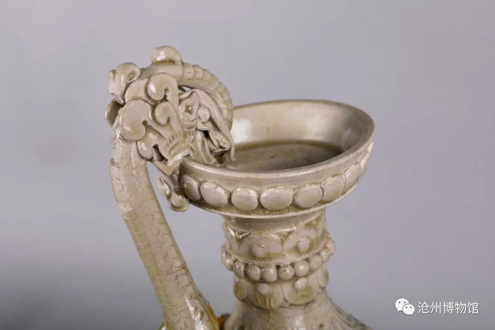 这件龙柄壶可谓是沧博的“明星展品”,造型上与现藏故宫博物院的唐代青釉凤首龙柄壶极为相似。