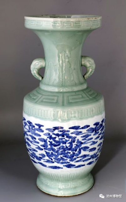 清代 ·豆青釉青花云龙纹双象耳瓶