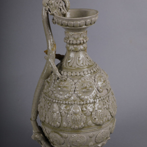 青釉堆贴花龙柄壶