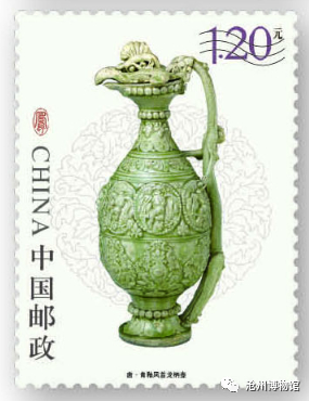 邮票图案为唐·青釉凤首龙柄壶