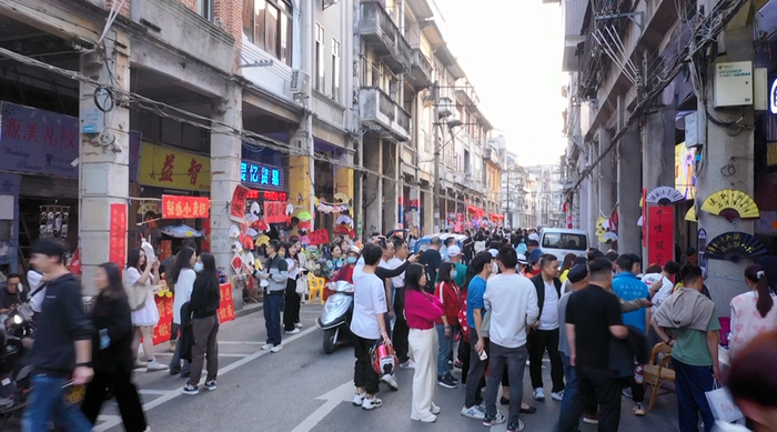 “你看,这就是电视剧《狂飙》中‘强盛小灵通’所在的店铺。”“让我们问问有没有小灵通卖?”在长堤历史文化街区,剧中“强盛小灵通”所在店铺如今是“广博文具店”,吸引了许多游客的目光。一位游客把脑袋伸进店铺,问:“有小灵通卖吗?”收银员笑了笑回答:“卖完了。”而在不远处,则是安欣和高启强对视擦肩走过的拍摄地点。不少游客一边比照着手机里的剧照,一边选择角度拍照。