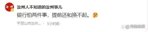 而市民观察团成员“汝州人不知道的汝州事儿”则表示:银行怕两件事,提前还和还不起。