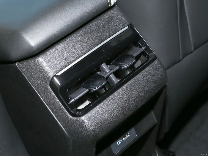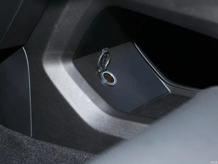 中控屏下方配有物理按键,可以帮助驾乘者更快更精准的操作空调系统。储物槽上方以及中控台储物空间处配有两个USB接口和一个12V电源接口。