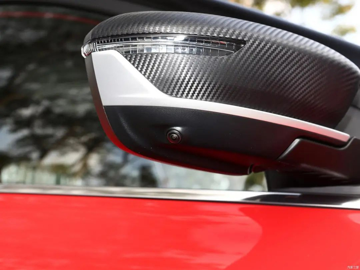 外后视镜配有碳纤维的装饰,增加了一些运动感,其在功能方面也很全面,全系标配了电动调节、电动折叠、后视镜加热以及锁车自动折叠功能。