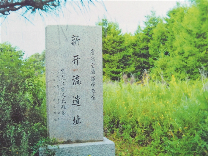 兵团时期的1971年秋,黑龙江生产建设兵团四师43团(今天的兴凯湖农场)值班连进行武装拉练,在湖岗上拣到一些陶片后,他们上报当时的黑龙江省文化局。第二年的4月,省里组成考古队,兴凯湖农场派22连4排40余名女战士,配合挖掘近4个月,发掘280平方米。在“新开流”向东1500米处发现了一处古代遗址。遗址东西长300米,南北宽80米,面积约24000平方米。同年秋天,国家考古专家对其进行了挖掘。发现新石器时代墓葬132座,鱼窖10座,出土了2000余件以鱼鳞纹、水波纹为特征的陶器和以渔猎工具为主的石器、骨器、牙骨角器等,年代距今5400年上下。这些文物同年在哈尔滨历史博物馆展出后,运往北京。经国家有关专家鉴定,这是一处有别于其它新石器时代文化类型的富有鲜明特点的遗址,并在故宫博物院作专题展出。黑龙江省人民政府于1981年1月27日公布,新开流遗址为省级文物保护单位,并于1982年立碑保护。