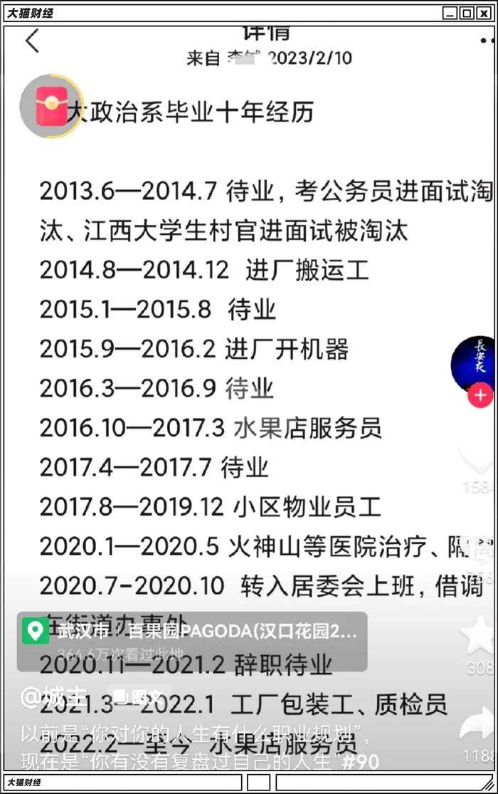 无独有偶,前几天武汉大学政治学专业的毕业生写了一篇《涂自强的个人悲伤》,也火爆了全网。