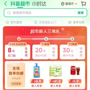 二是物流配送。目前抖音还没建立起自己的物流渠道,抖音超市的快递运输也主要依赖与顺丰、中通等的合作,与天猫京东比,运力上处于劣势。基于这个因素,抖音超市的“小时达”、“次日达”服务可到达的范围远远不及天猫超市、京东超市。如果你定位在深圳等一线城市,则可以拥有“小时达”服务;若是定位在广东省内其他二三线城市,可拥有“次日达”服务,但要是定位到其他省份,并没有明确的送达时间,通常为3天左右。