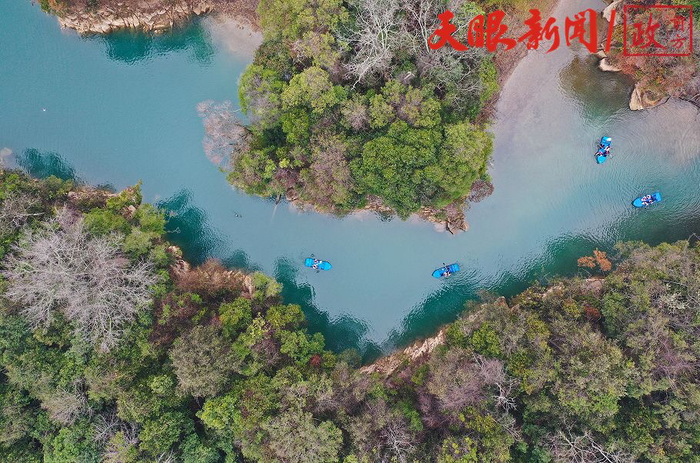游客泛舟荔波小七孔景区。(图/林民)