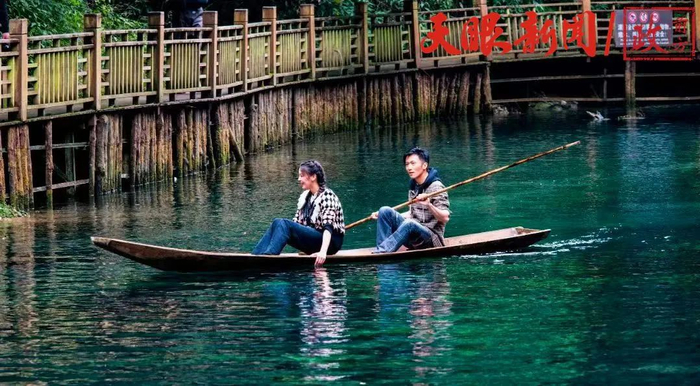 卧龙潭静静流淌在群山环抱之中。“我现在在贵州,看看我们这边的卧龙潭瀑布,看看大自然的鬼斧神工。”谢霆锋与杨超越泛舟荔波小七孔景区卧龙潭上,一起推介荔波小七孔,为贵州旅游打call。